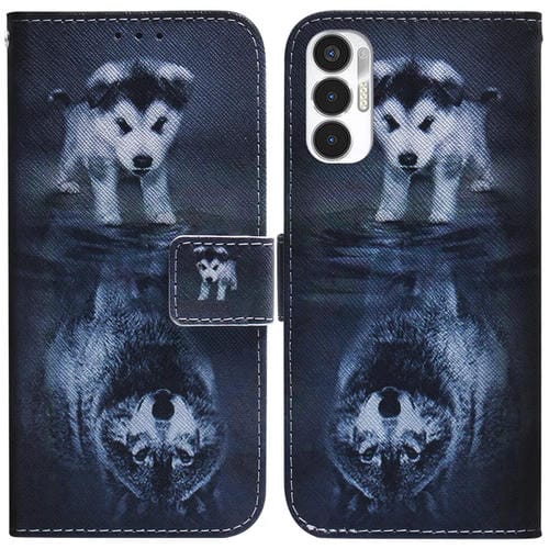 Funda de Cuero para Tecno Pova 3 Le7 con Dibujo Coloreado Lobo y Perro