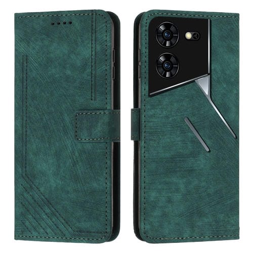 Funda de Cuero para Tecno Pova 5 Pro con Patrón de Rayas y Cordón Largo (Verde)