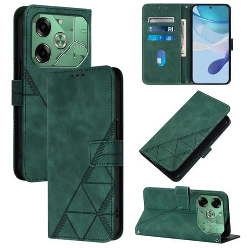 Funda de Cuero para Tecno Pova 6 4G Crossbody con Tapa en Relieve 3D (Verde Oscuro)