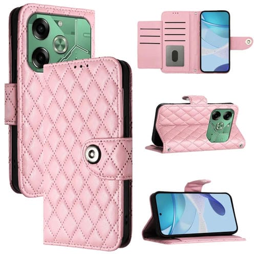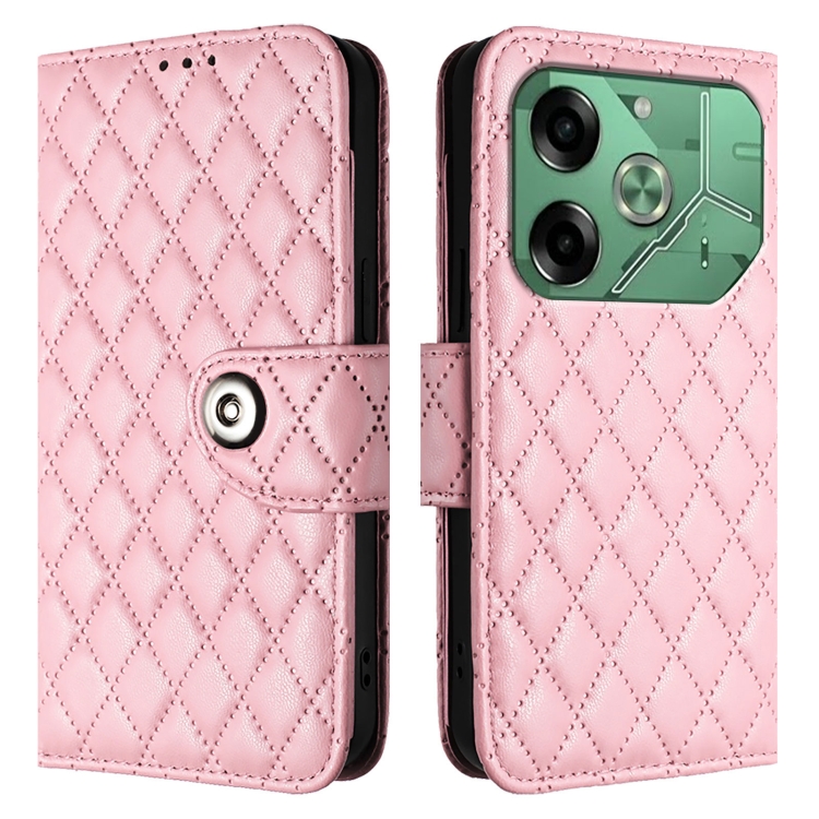 Funda de Cuero para Tecno Pova 6 4G con Tapa, Textura Romboidal y Cordón (Rosa)