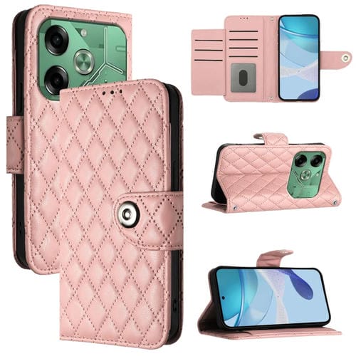 Funda de Cuero para Tecno Pova 6 4G con Tapa Textura Romboidal y Cordón (Rosa Coral)
