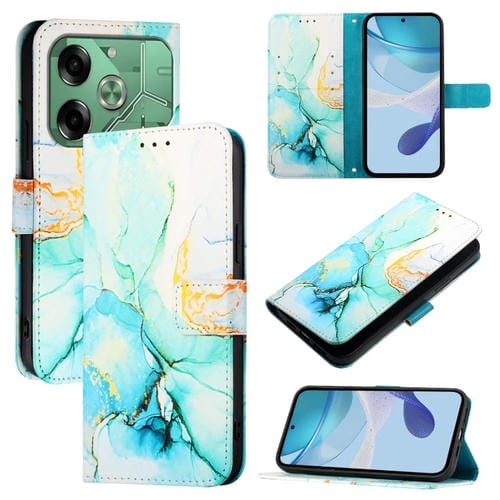 Funda para Tecno Pova 6 4G Pt003 de Cuero con Tapa y Patrón Mármol (Verde)