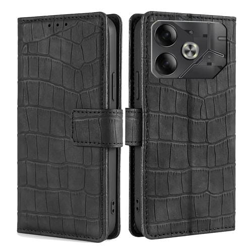 Funda de Cuero para Tecno Pova 6 5G Skin Feel Crocodile con Cierre Magnético (Negro)