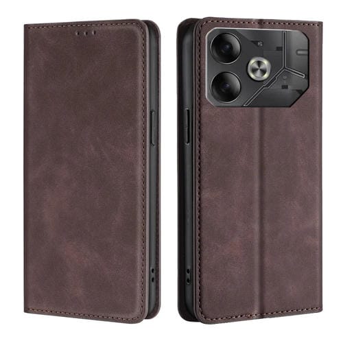 Funda de Cuero Magnética para Tecno Pova 6 5G Skin Feel (Marrón Oscuro)