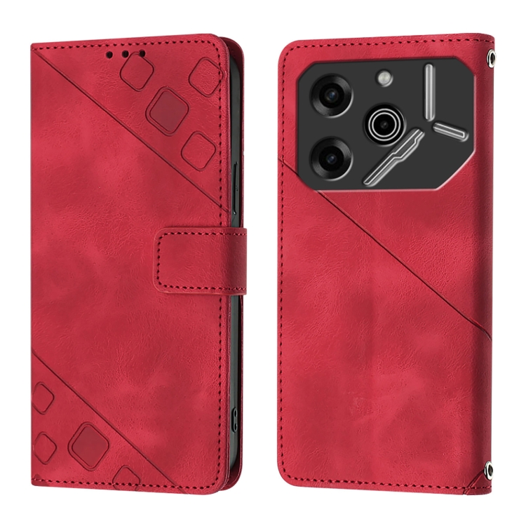 Funda de Cuero para Tecno Pova 6 5G Skin Feel en Relieve (Rojo)