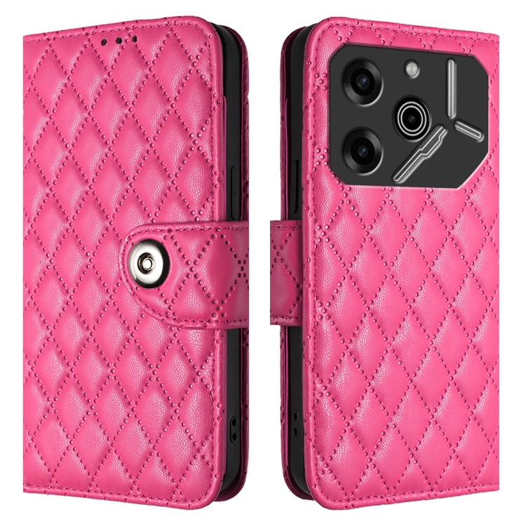 Funda para Tecno Pova 6 Pro y Pova 6 5G con Tapa de Cuero, Textura Rómbica y Cordón (Rojo Rosa)