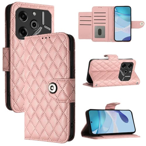 Funda para Tecno Pova 6 Pro y Pova 6 5G con Tapa de Cuero, Textura Rómbica y Cordón (Rosa Coral)