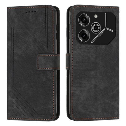 Funda de Cuero para Tecno Pova 6 Pro con Patrón de Rayas y Cordón Largo (Negro)
