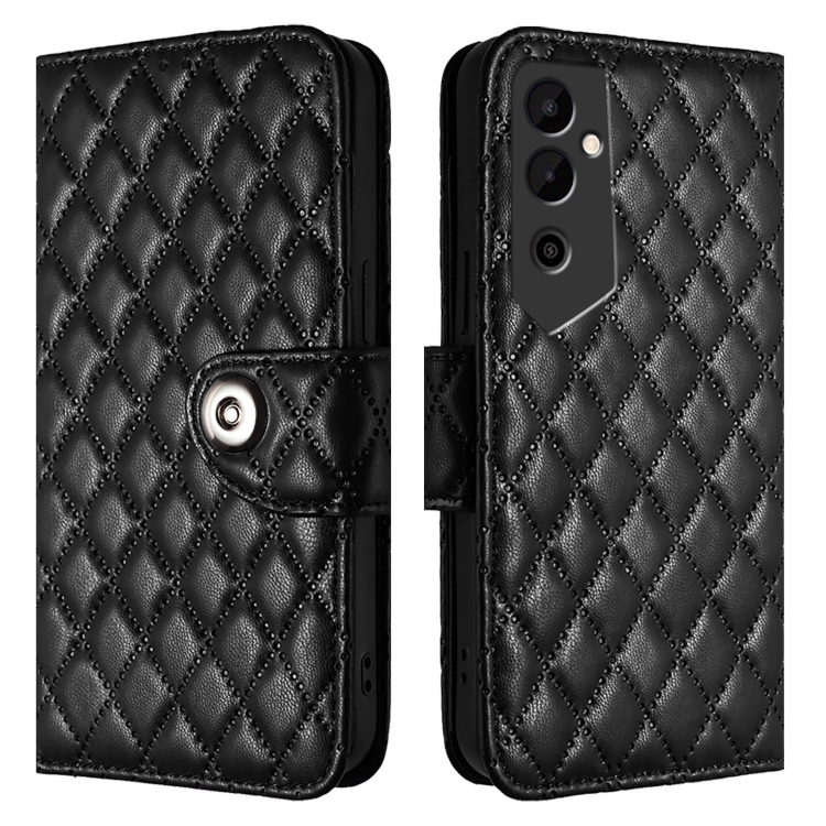 Funda de Cuero para Tecno Pova Neo 2 con Tapa Textura Rombal y Cordón (Negro)