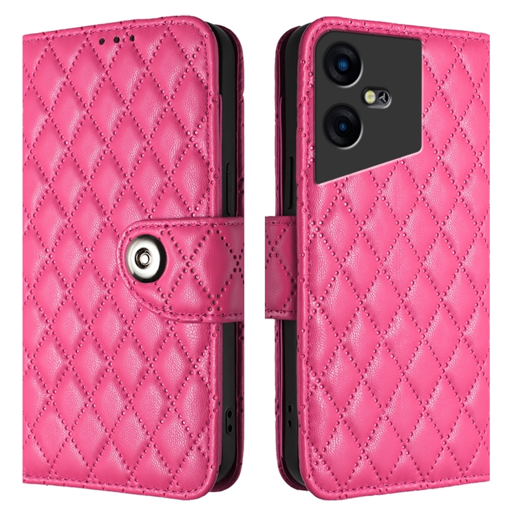 Funda para Tecno Pova Neo 3 con Tapa de Cuero Textura Rombal y Cordón (Rojo Rosa)
