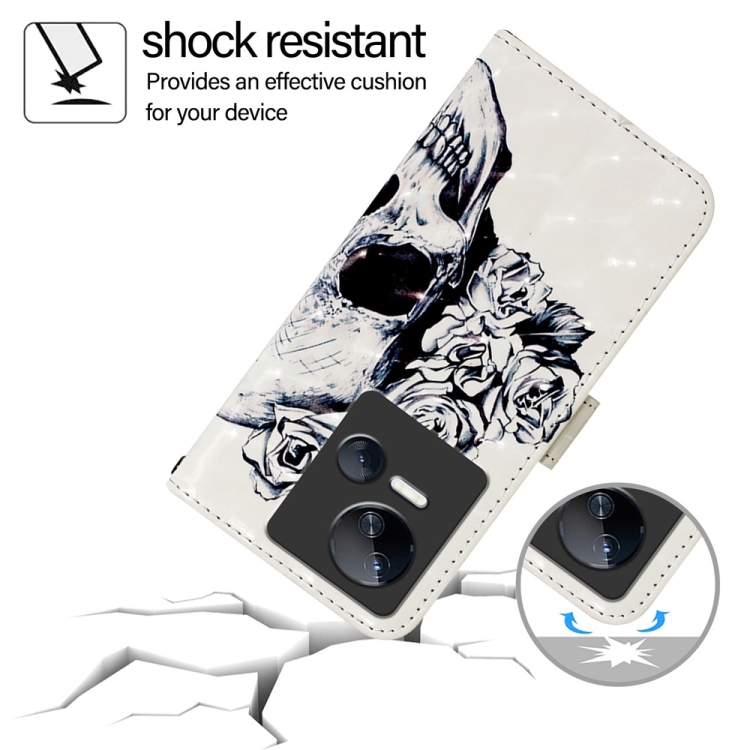 Funda de Cuero para Tecno Spark 10 5G con Tapa Horizontal y Pintura 3D (Calavera)