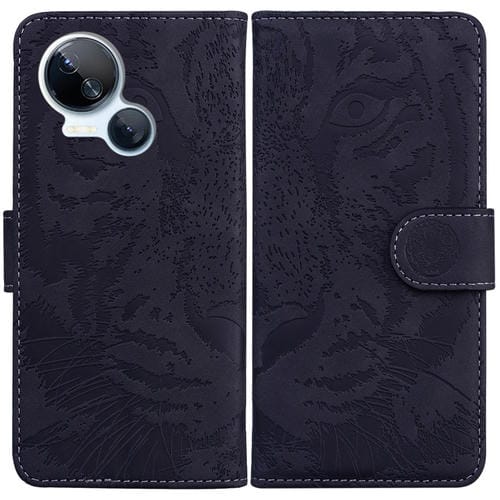 Funda Flip de Cuero para Tecno Spark 10 5G con Patrón Tiger Embossing (Negro)