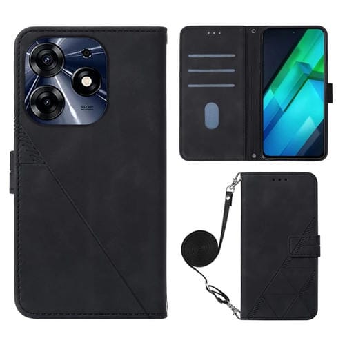 Funda de Cuero para Tecno Spark 10 Pro Ki7 Crossbody 3D con Tapa En Relieve (Negro)