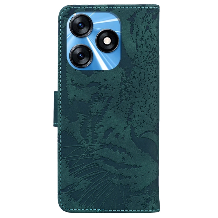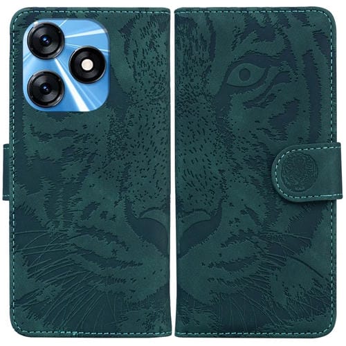 Funda Flip de Cuero para Tecno Spark 10 y Spark 10C con Patrón Tiger Embossing (Verde)