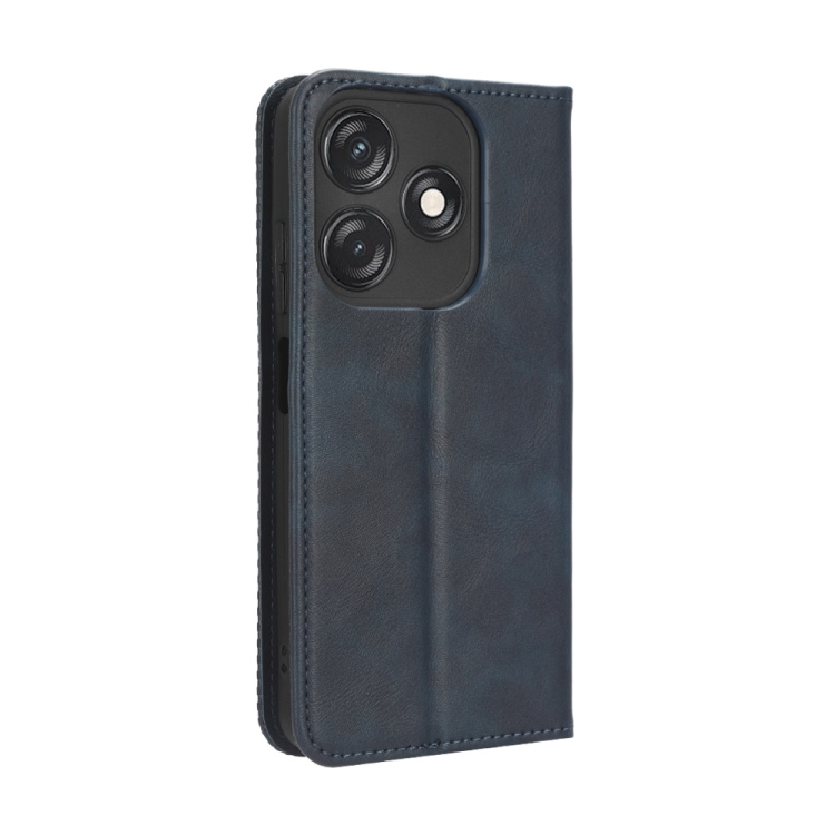 Funda de Cuero para Tecno Spark 10C con Hebilla Magnética y Textura Retro (Azul)