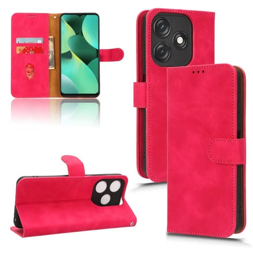 Funda Flip de Cuero Skin Feel para Tecno Spark 10C (Rosa Roja)