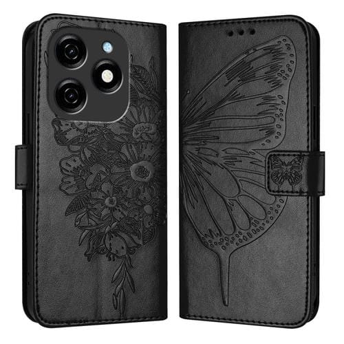 Funda de Cuero para Tecno Spark 20 con Mariposa en Relieve (Negro)