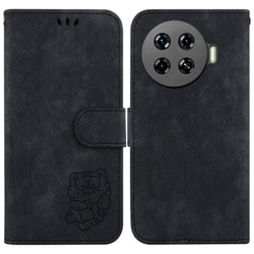Funda de Cuero para Tecno Spark 20 Pro + 4G Little Tiger en Relieve (Negro)