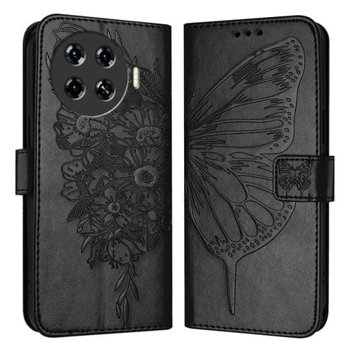 Funda de Cuero para Tecno Spark 20 Pro+ con Mariposa en Relieve (Negro)