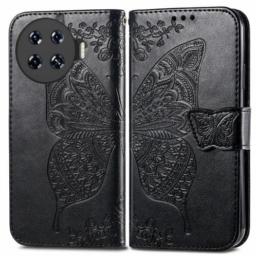 Funda para Teléfono + Tecno Spark 20 Pro + Cuero con Relieve de Flor y Mariposa (Negro)