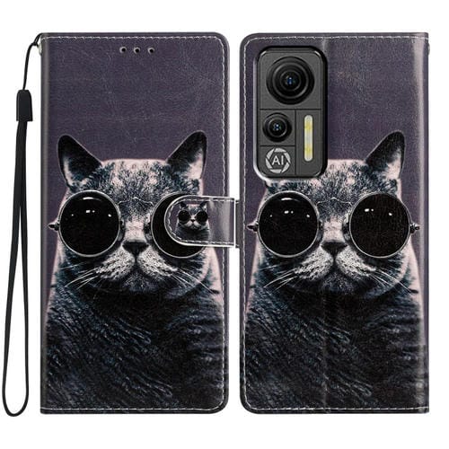 Funda de Cuero para Ulefone Note 14 con Dibujo de Gato de Gafas de Sol