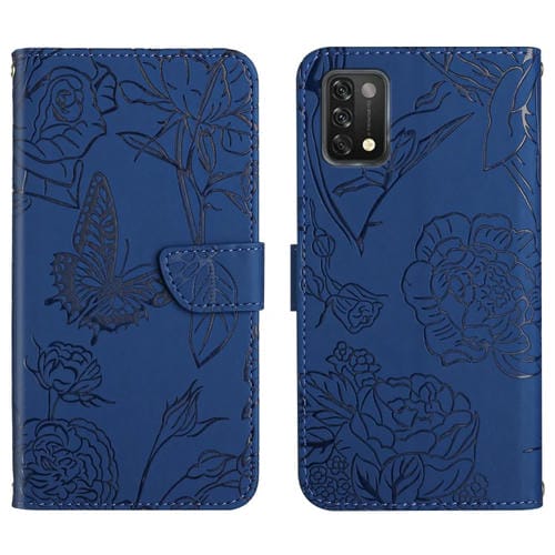 Funda para Umidigi A11 de Cuero en Relieve con Diseño de Mariposa (Azul)