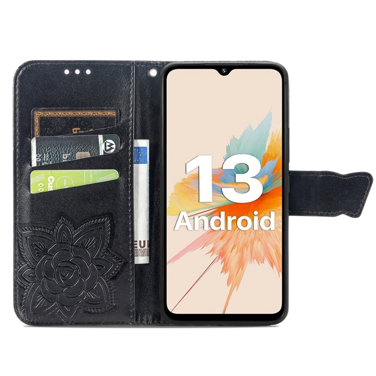 Funda para Umidigi A13 Pro 5G Cuero Relieve Flor y Mariposa (Negro)
