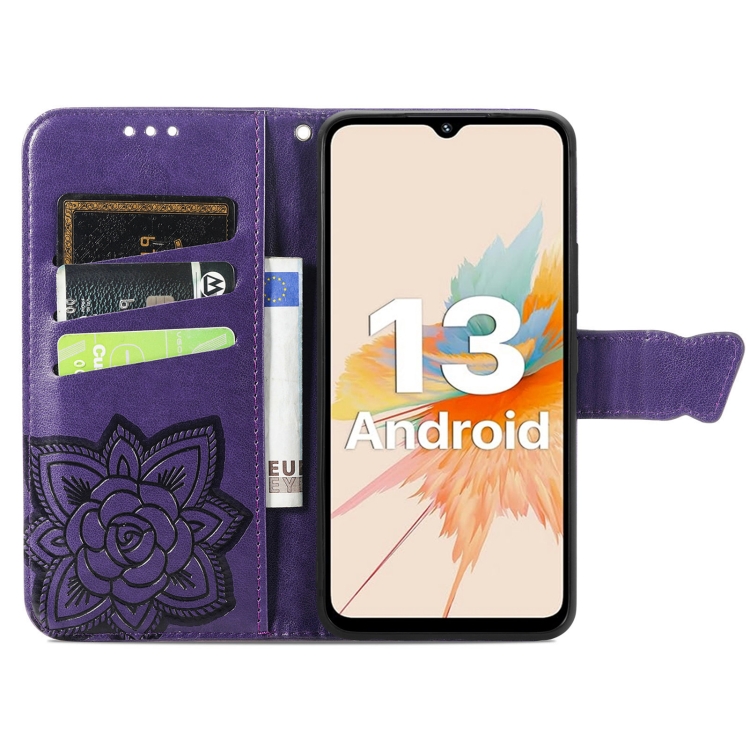 Funda para Umidigi A13 Pro 5G de Cuero con Relieve Flor y Mariposa (Púrpura)