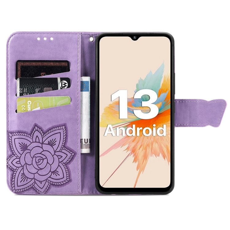 Funda para Umidigi A15 / A15C Cuero con Relieve Flor de Amor y Mariposa (Lavanda)