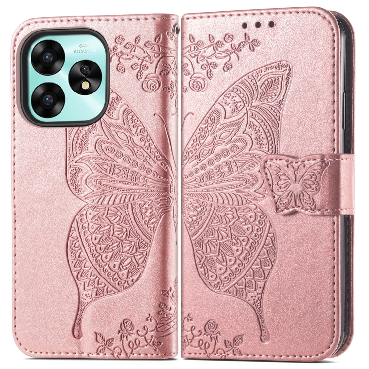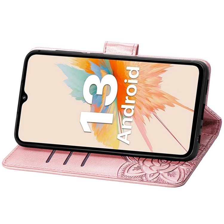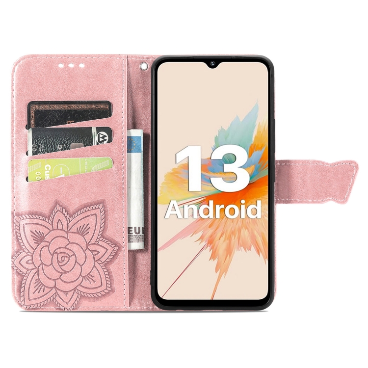 Funda para Umidigi A15 / A15C de Cuero con Relieve Flor y Mariposa (Oro Rosa)