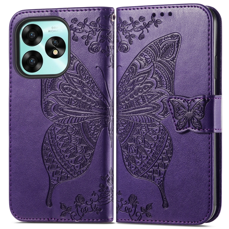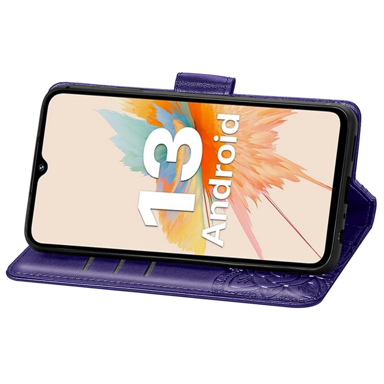 Funda para Teléfono Umidigi A15 A15C Cuero Relieve Flor y Mariposa (Púrpura)
