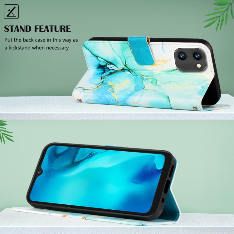 Funda para Umidigi C1 Pt003 con Tapa de Cuero y Patrón de Mármol (Verde)