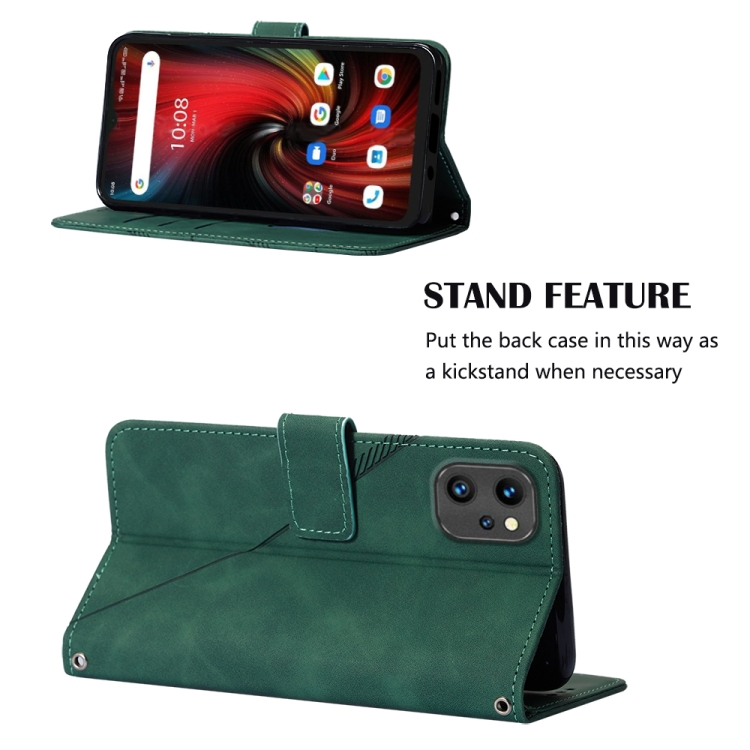 Funda de Cuero con Tapa para Umidigi F3 4G/5G/Se/S Crossbody 3D Relieve (Verde Oscuro)