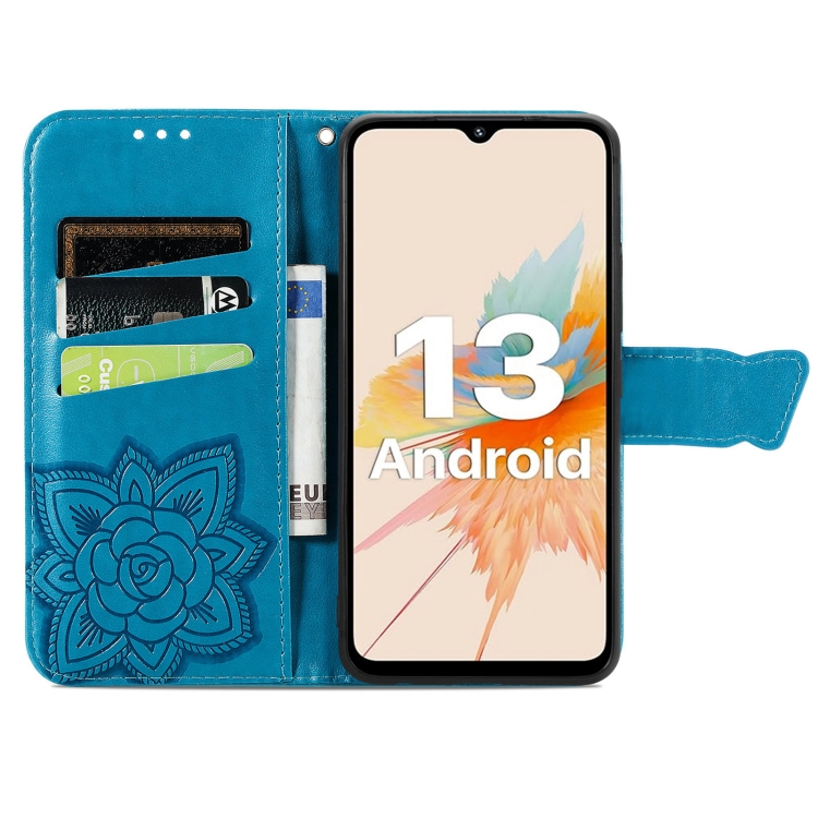 Funda para Umidigi G5 / G5A de Cuero con Relieve Flor de Amor y Mariposa (Azul)