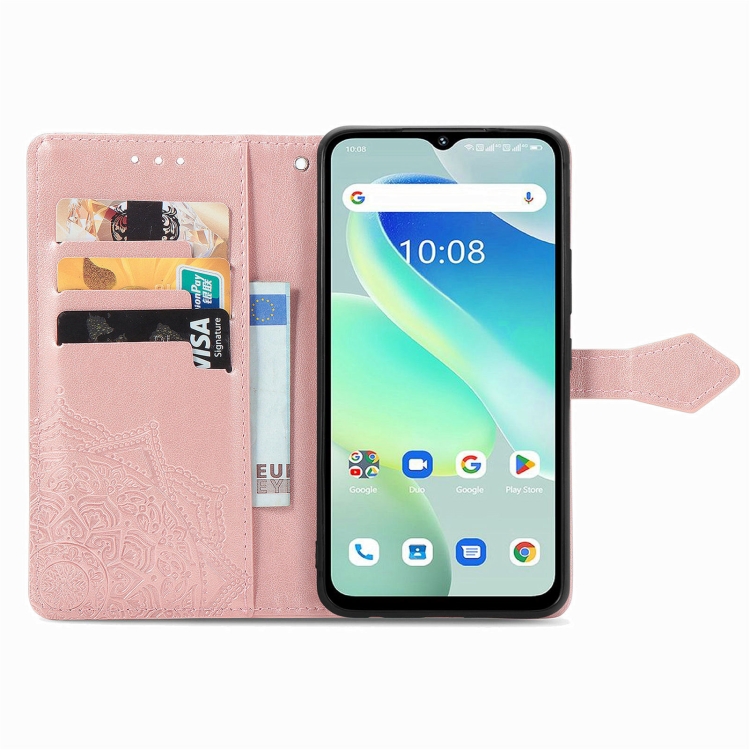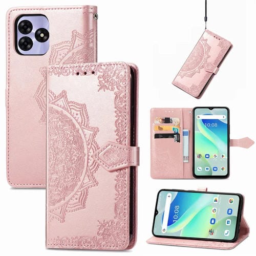 Funda de Cuero para Umidigi G5 Mandala Flower en Relieve (Oro Rosa)