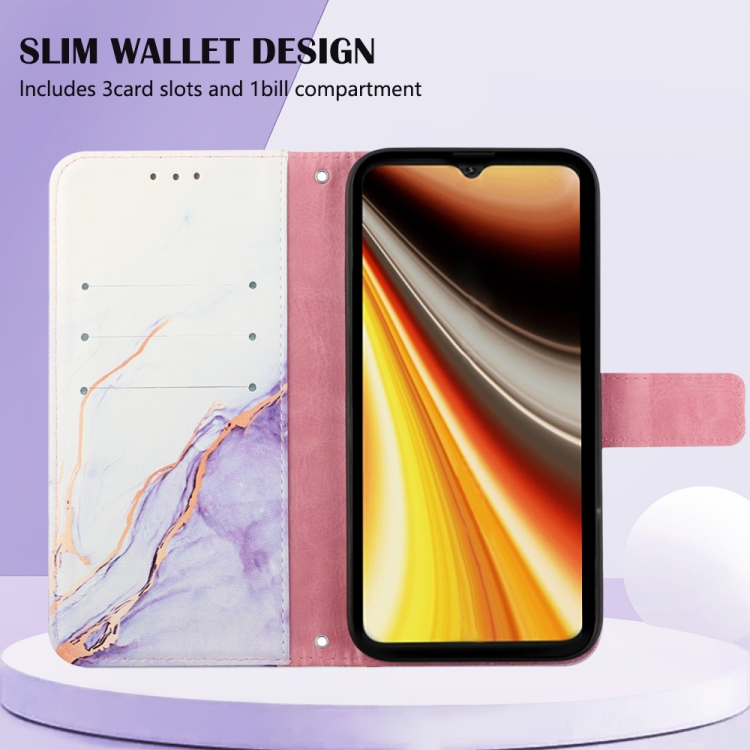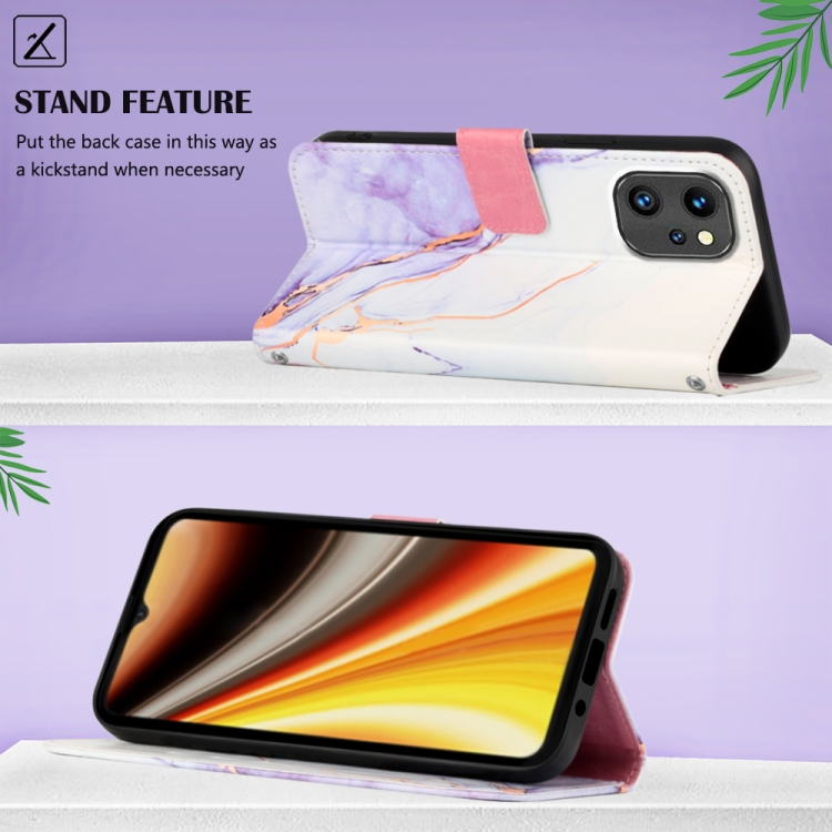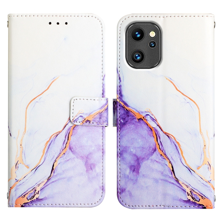 Funda de teléfono Umidigi Power 7 Max Pt003 con tapa de cuero y patrón de mármol (Blanco Púrpura)