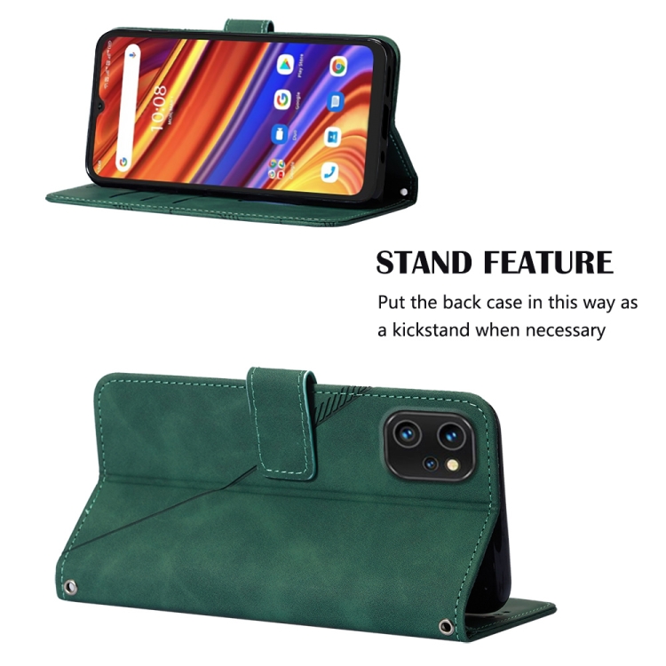 Funda de Cuero para Umidigi Power 7 y Power 7S Crossbody con Tapa en Relieve (Verde Oscuro)