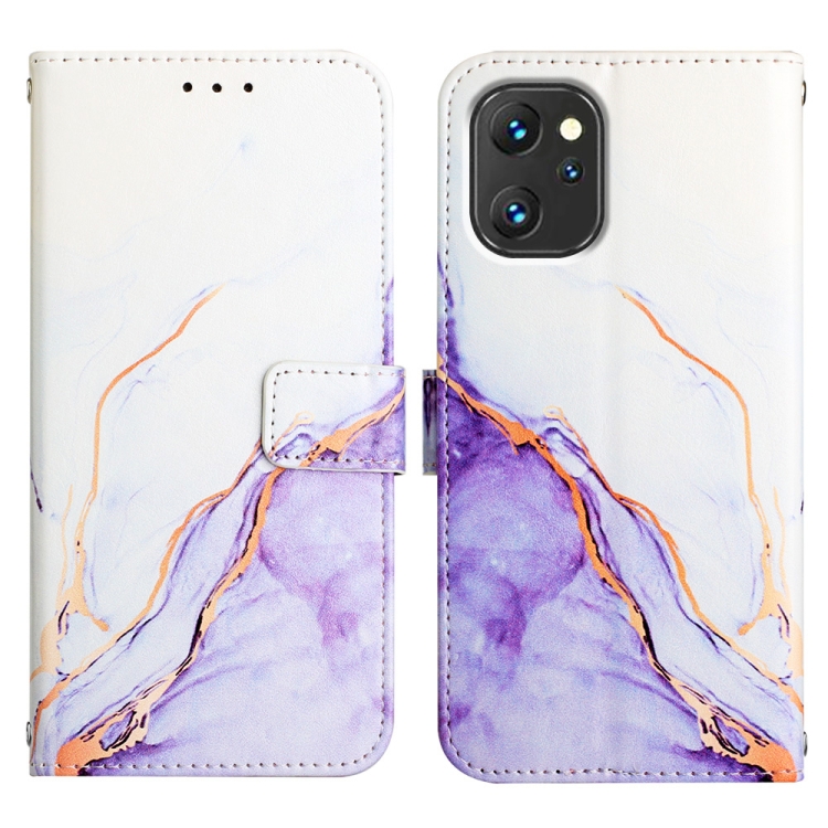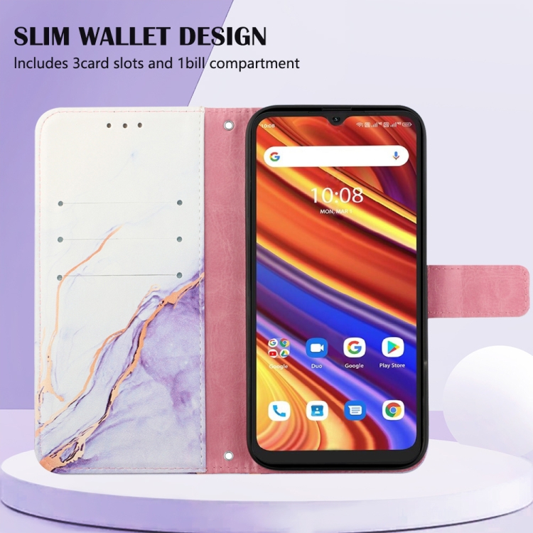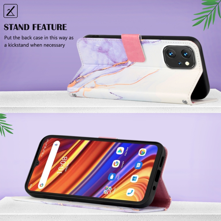 Funda de Teléfono Umidigi Power 7 Power 7S Pt003 Tapa de Cuero Patrón Mármol (Blanco Púrpura)