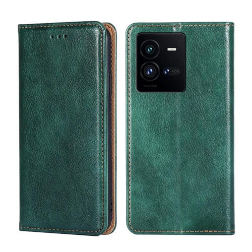 Para Vivo Iqoo 10 Pro 5G Estuche para Teléfono de Cuero Magnético de Color Sólido con Aceite Brillante (Verde)