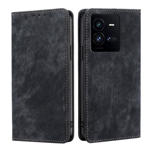 Para Vivo Iqoo 10 Pro 5G Rfid Funda de Teléfono de Cuero Magnético con Cepillo Antirrobo (Negro)