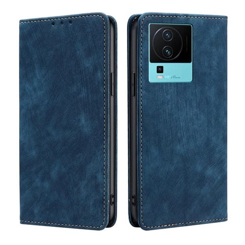 Para Vivo Iqoo Neo7 Rfid Funda de Teléfono de Cuero Magnético con Cepillo Antirrobo (Azul)