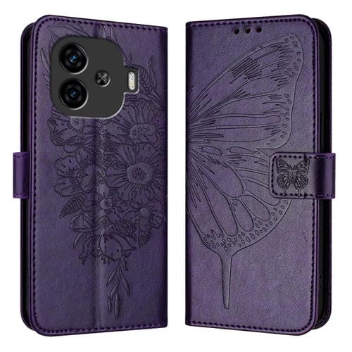 Para Vivo Iqoo Z9 / Iqoo Z9 Turbo 5G Funda de Cuero para Teléfono con Mariposa En Relieve (Púrpura Oscuro)