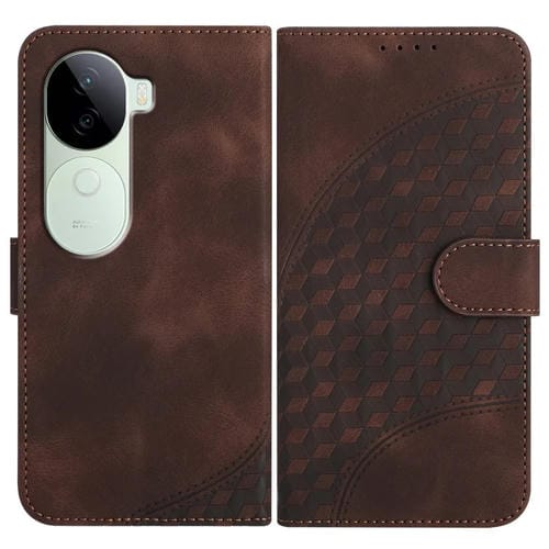 Para Vivo Iqoo Z9S / V40E India Yx0060 Funda de Cuero para Teléfono con Relieve de Cabeza de Elefante y Cordón (Café)