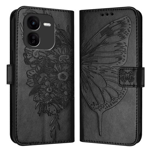 Para Vivo Iqoo Z9X Funda de Cuero con Mariposa En Relieve (Negro)