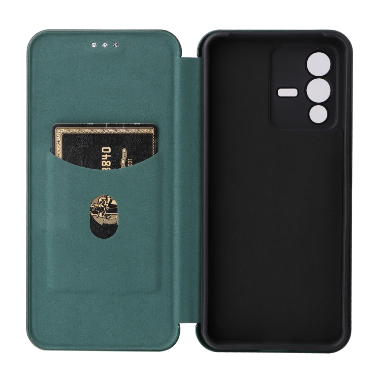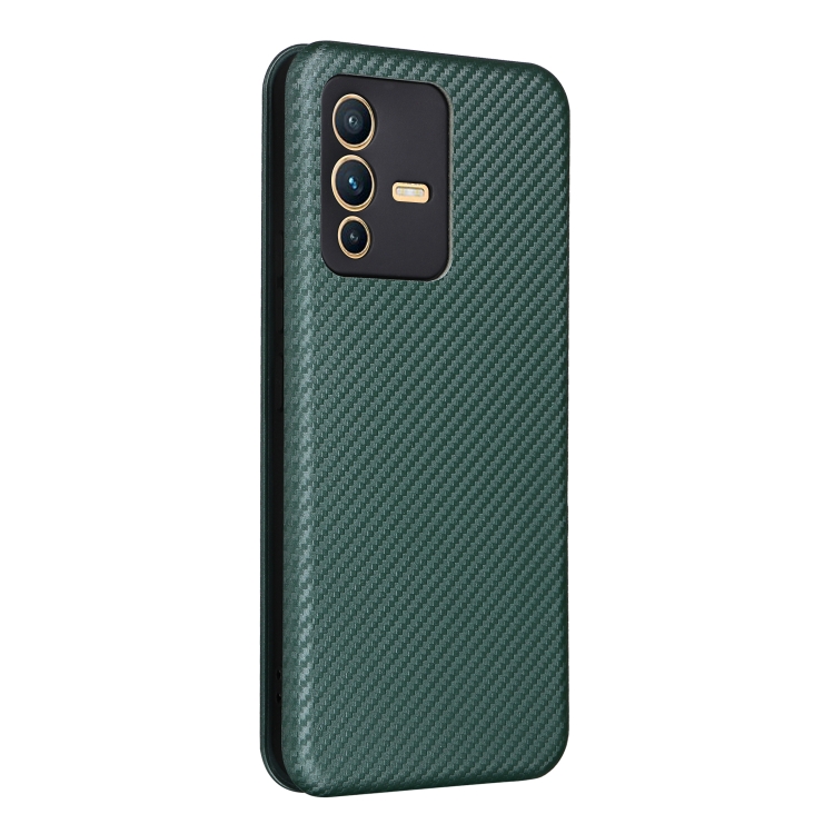 Para Vivo S12 5G / V23 5G Caja de Teléfono de Cuero Magnético con Textura de Fibra de Carbono (Verde)