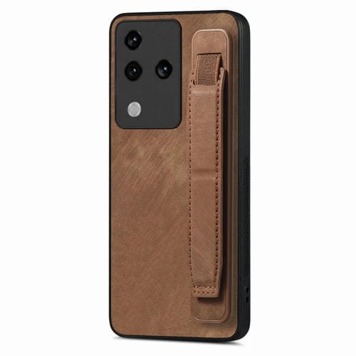 Para Vivo S18 Pro Retro Muñequera Funda Trasera de Cuero para Teléfono (Marrón)