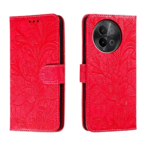 Para Vivo S18E Funda para Teléfono de Cuero con Tapa y Estampado de Flores de Encaje (Rojo)