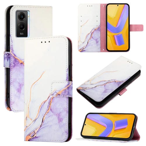 Para Vivo T1 5G / Iqoo U5E / Y30 5G / Y33E 5G Pt003 Funda de Cuero con Tapa con Patrón de Mármol (Blanco Púrpura)