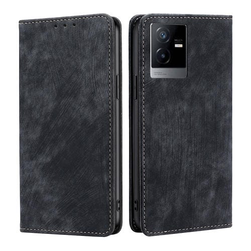 Para Vivo T2X 5G/Y73T/Iqoo Z6X Rfid Funda de Teléfono de Cuero Magnético con Cepillo Antirrobo (Negro)