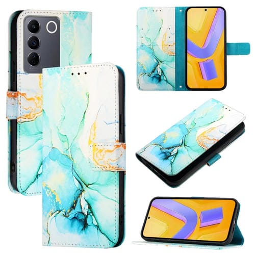 Para Vivo V27E 4G / T2 4G Global Pt003 Funda de Cuero con Tapa con Patrón de Mármol (Verde)
